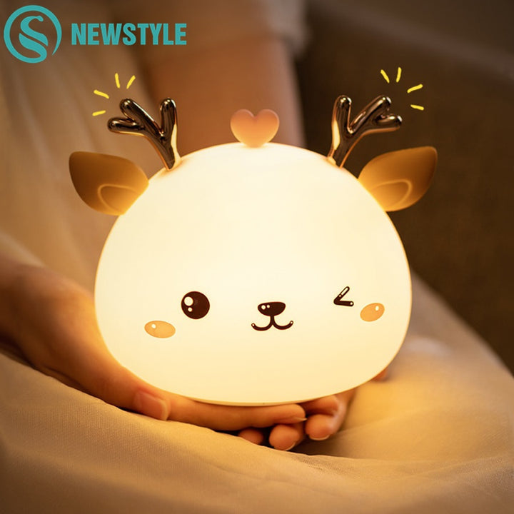 Adorable Deer Nursery Night Light: Stepless Touch Control, USB Rechargeable Table Lamp for Kids, Babies, and Home Decor